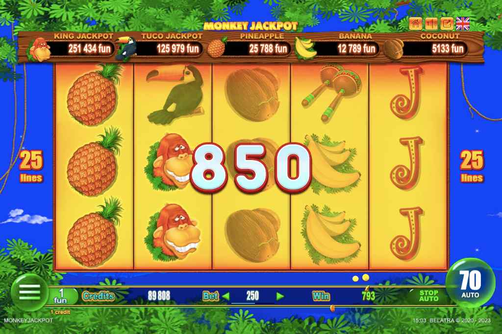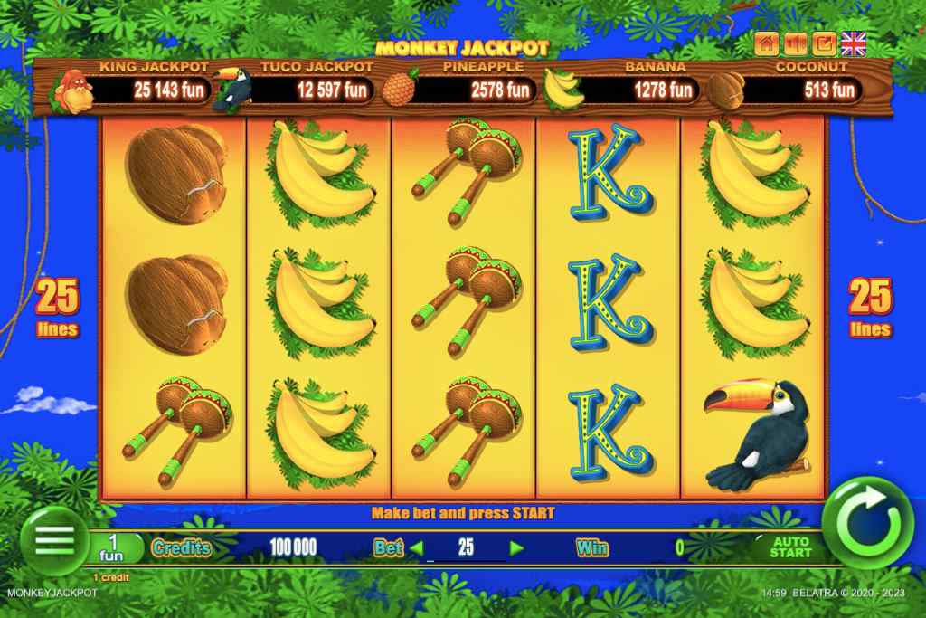 Играйте в слот Monkey Jackpot от Белатра на своем ПК и смартфоне, в любое удобное для вас время. Просто скачайте приложение на нашем сайте, пройдите быструю регистрацию, выберите нужный игровой автомат и окунитесь в мир азарта и удовольствия.