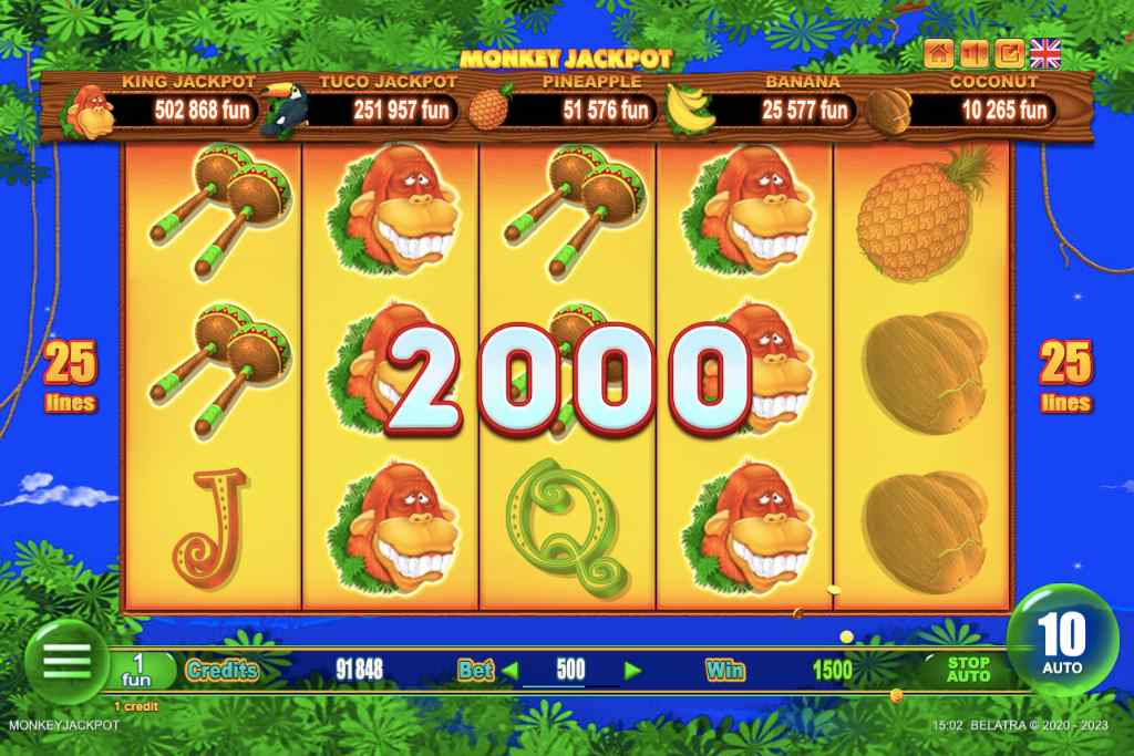 Волатильность Monkey Jackpot Высокая, показатель RTP (процент возврата игроку ) составляет 96.09%.
