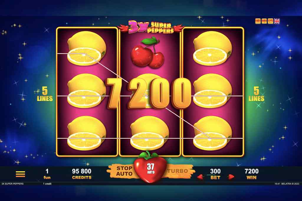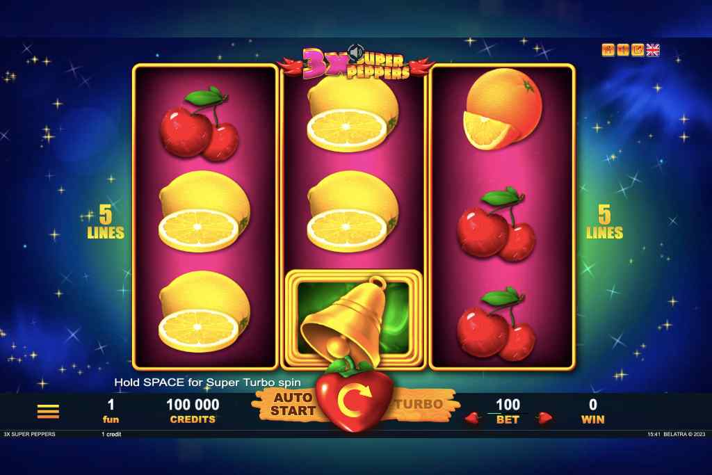 3x Super Peppers - игровой автомат тематики «777» от разработчика Belatra (Белатра). Игра понравится любителям оффлайн игровых автоматов и фанатам онлайн слотов.
