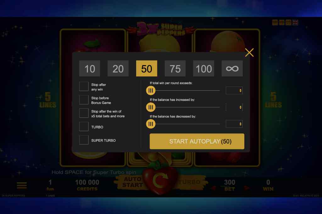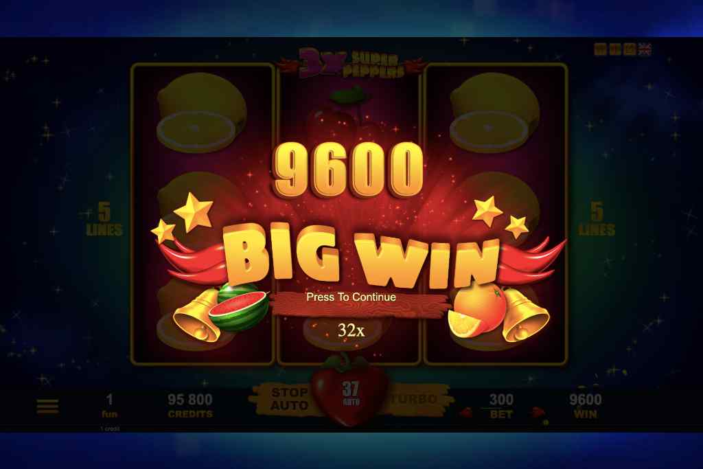 Волатильность 3x Super Peppers Ниже среднего, показатель RTP (процент возврата игроку ) составляет 96.32%.