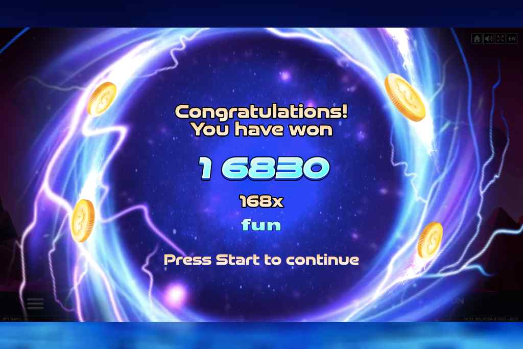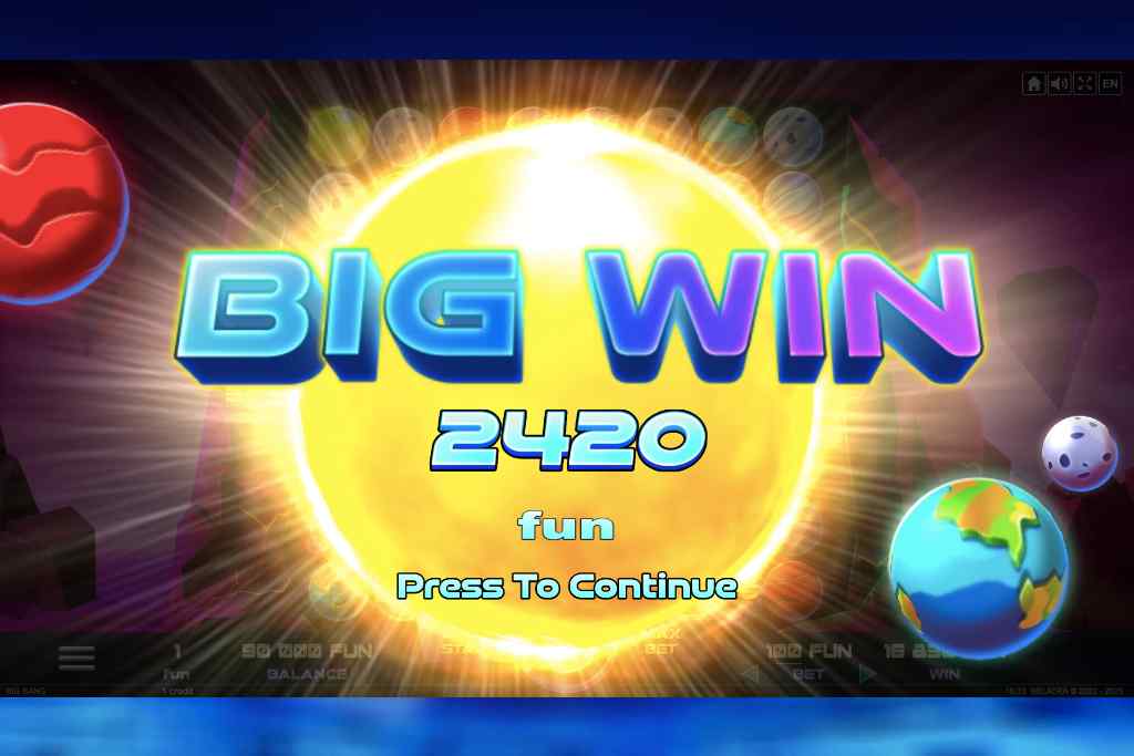 Волатильность Big Bang Высокая, показатель RTP (процент возврата игроку ) составляет 96.30%.