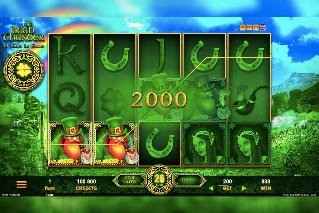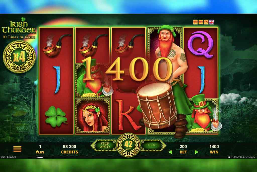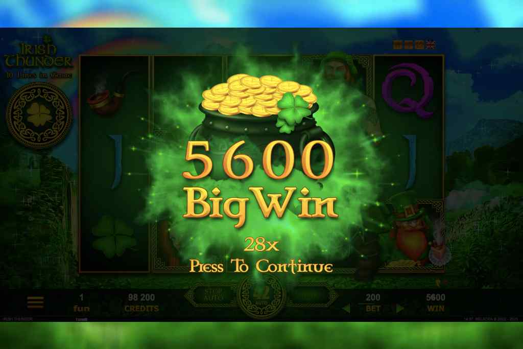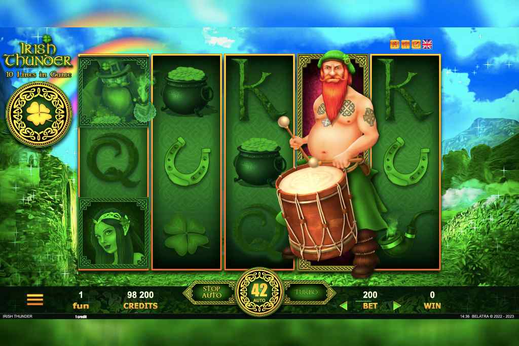 Волатильность Irish Thunder Высокая, показатель RTP (процент возврата игроку ) составляет 95.58%.